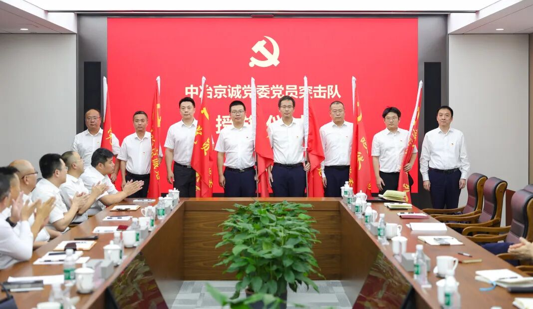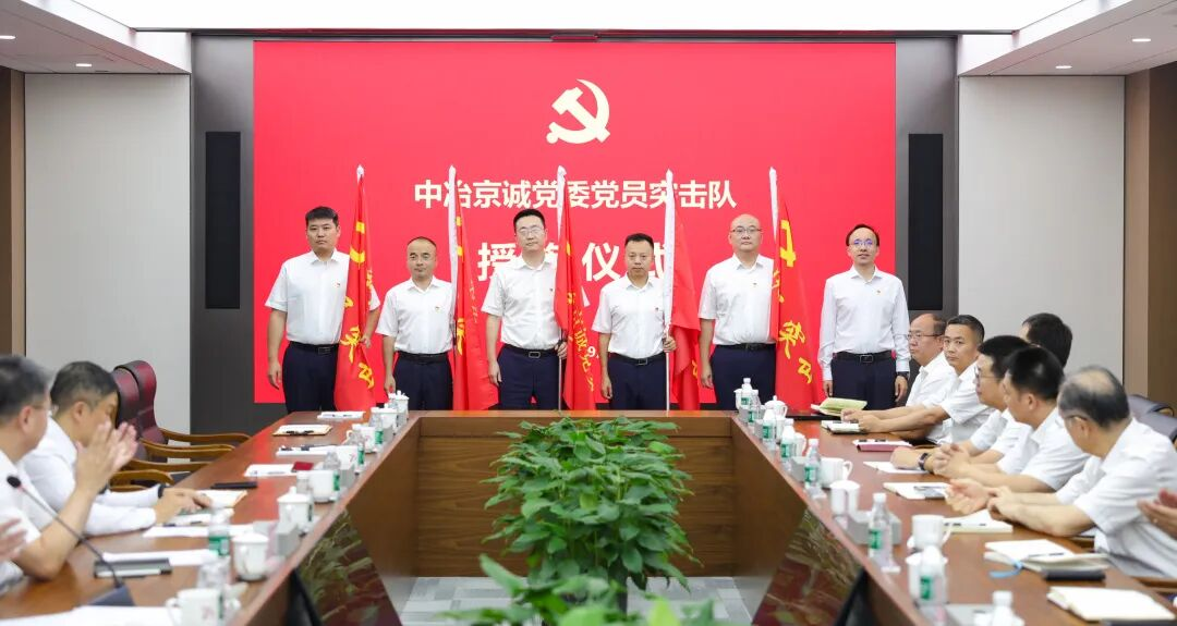 会议期间,公司党委对选取的12个项目结算、清欠和履约党员突击队举行了授旗仪式。