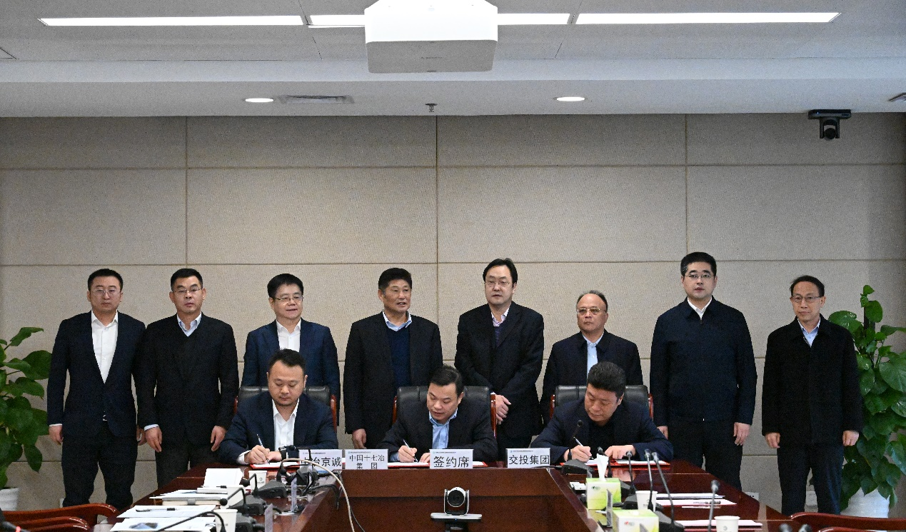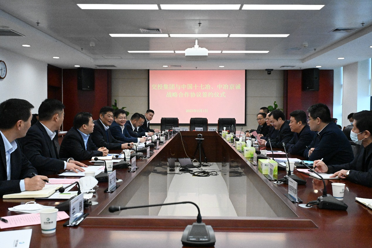 2月1日,中冶京诚工程技术有限公司与中国十七冶集团有限公司、石家庄交通投资发展集团有限责任公司共同签署战略合作框架协议。石家庄交投集团党委书记、董事长张占宗,中冶京诚党委书记、董事长岳文彦,中国十七冶集团党委书记、董事长喻世功出席签约仪式并进行工作会谈。在各方共同见证下,中冶京诚党委委员、副总经理张传波与中国十七冶集团副总经理张杰,石家庄交投集团党委副书记、工会主席何永利代表三方签署战略合作框架协议。