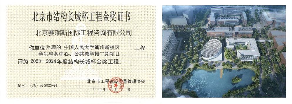 近日,北京市工程建设质量协会公布“2023年-2024年度北京市结构长城杯工程获奖名单”,中冶京诚赛瑞斯监理的9个项目喜获建筑(结构)长城杯奖。其中,国航股份有限公司飞行模拟训练基地二期,清华大学新土木馆(教学科研楼)获得建筑金奖;墨玉县北京一贯制学校,中国人民大学通州新校区学生事务中心、公共教学楼二期获得结构金奖;丰台区郭公庄车辆段、中国铁物大厦获得建筑银奖,北京市朝阳区王四营乡土地一级开发项目、北京大兴新城核心区、北京市昌平区国家公共安全平台及研究基地获得结构银奖。再创行业佳绩。