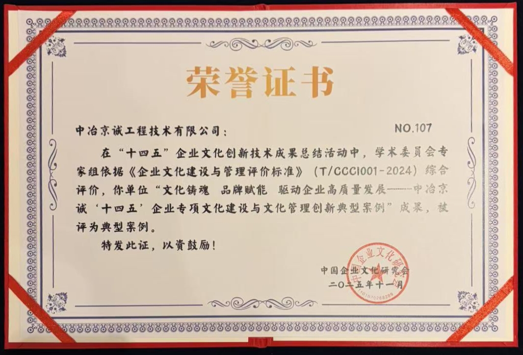 此次获评典型案例,既是对中冶京诚“十四五”企业文化工作的肯定,更是对未来的鞭策。面向“十五五”,中冶京诚将继续坚定文化自信,推动文化创新向更深层次拓展,为打造世界一流工程技术公司贡献文化力量。