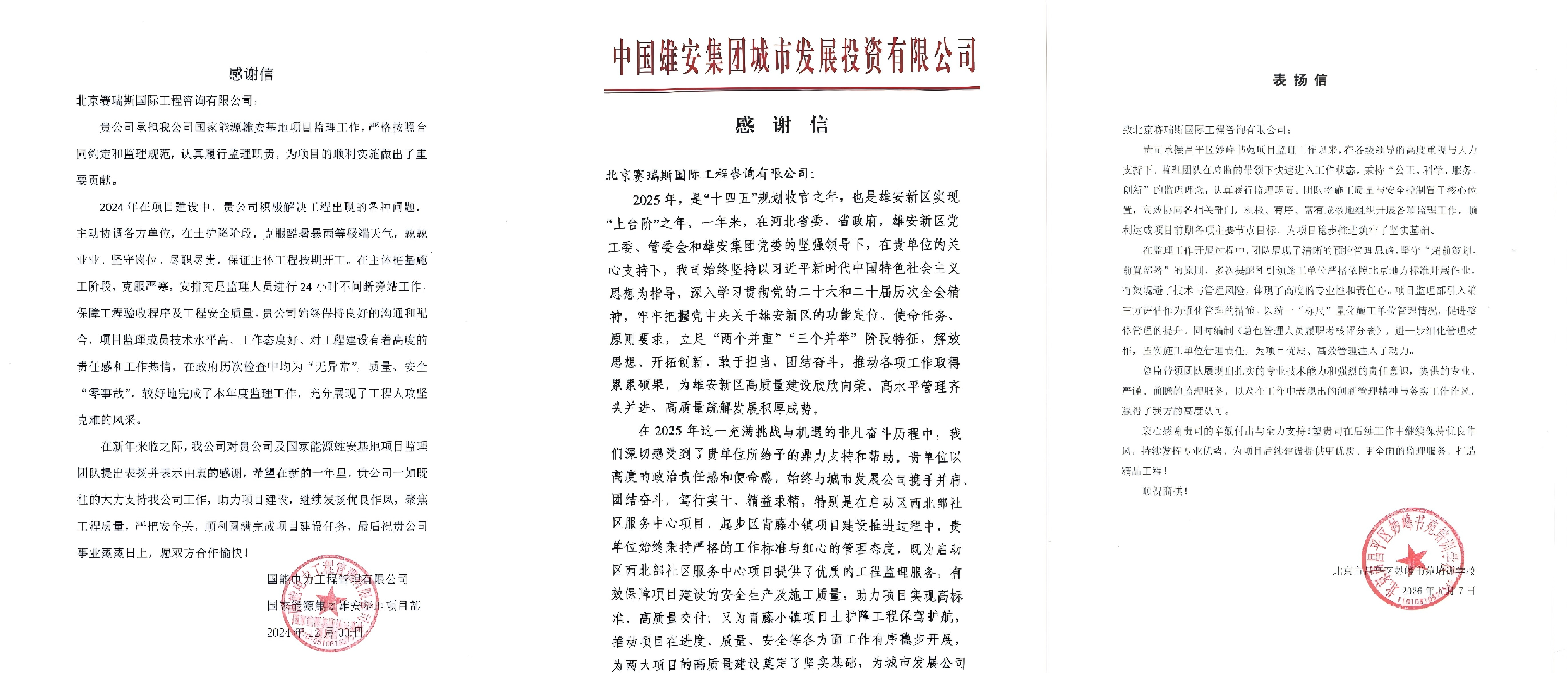 近期,中冶京诚赛瑞斯公司凭借专业高效的服务与高度的责任担当,在多个重点工程项目中获得业主单位表扬与感谢,充分展现了公司的技术实力与管理水平。