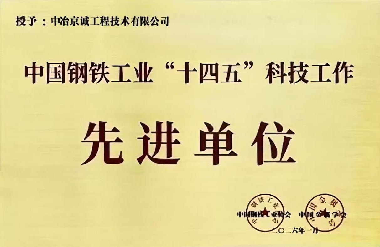 1月30日,钢铁行业科技创新大会在北京首钢国际会展中心成功召开。会议全面总结“十四五”期间行业高质量发展成效,明确“十五五”发展方向与2026年重点任务,号召全行业凝心聚力向新向优,为新型工业化、中国式现代化注入钢铁力量。会上正式揭晓了“十四五”期间钢铁工业科技工作先进单位、优秀个人及重大成果等名单,中冶京诚凭借在钢铁科技领域的卓越创新实力、标杆性工程业绩与雄厚的人才储备,一举斩获“中国钢铁工业‘十四五’科技工作先进单位”称号,并在科技成果、创新工程及个人奖项等评选中实现“多点开花”,彰显了公司在钢铁工程技术领域毋庸置疑的引领地位。