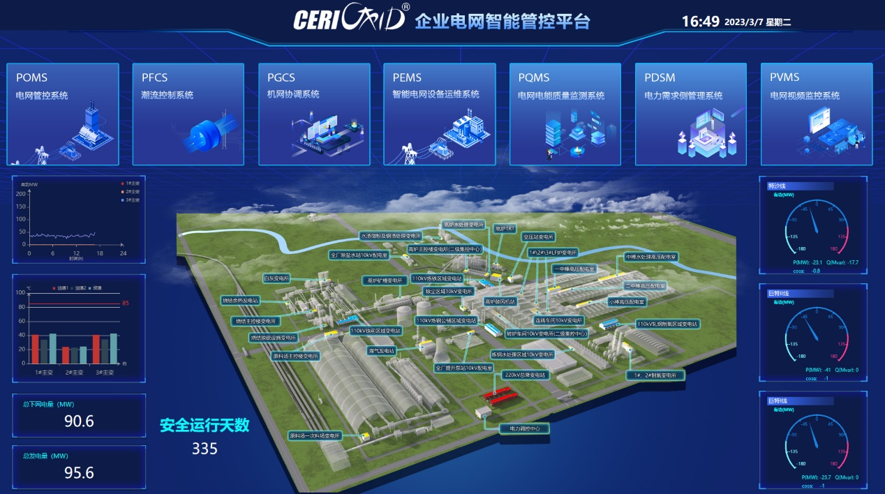 中冶京诚自主研发的工业微电网智慧能源管控系统聚焦目前钢铁企业电网存在的“自发电消纳低、电费偏高、安全稳定性差”等诸多痛点问题,以客户需求为导向,将物联网、云计算和企业电网深度融合,确定了节能型、智能化、精准控制的研发目标,从架构、算法、控制、验证的总体思路进行深入研究,突破了数据难以贯通共享、关口潮流方向不可控、电网拓扑结构多变、控制策略无法在真实电网中热试的技术难关,在国内外首次打造了以关口潮流控制为核心、适用于千万吨钢铁企业的工业微电网智慧能源管控系统,实现潮流控制自动化、电网调度智能化、数据采集全景化、设备运维规范化、电网运行安全化、事故处理智慧化等核心功能,全面解决工业企业电网建设、管理、运维中的各类问题,帮助企业实现最大限度利用自发电量、节约电费开支、节省人工成本、减少停电损失、降低运维成本的多项切实需求,已在丰南钢铁、石横特钢、临沂钢投特钢等钢铁企业广泛应用。根据系统实际应用效果测算,精准控制企业电网关口潮流,能够帮助企业自发电量利用率提升7%以上,每年为千万吨级钢铁企业带来的年增收节支总额3亿元以上、吨钢成本减少30余元,每年累计为企业节约5.6亿度电、减少二氧化碳排放约32万吨,取得了良好的经济效益和社会效益,为高耗能行业降本增效、节能减碳、极致能效发展做出了积极贡献。