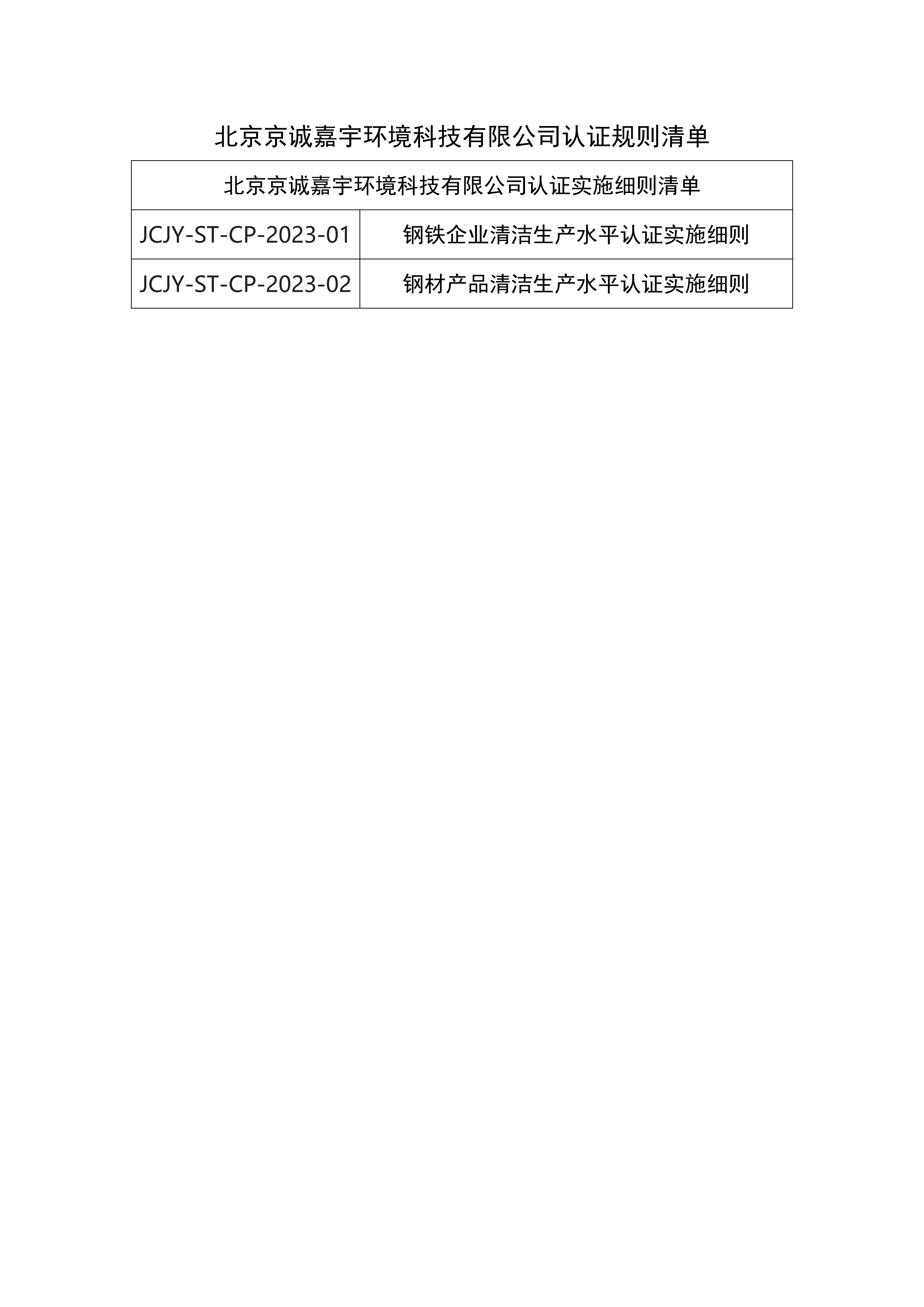 北京京诚嘉宇环境科技有限公司认证规则清单
